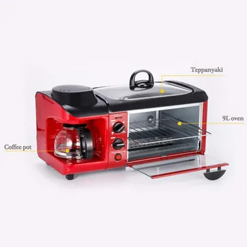 • *مميزات المنتج* • من السهل تشغيلها بمفتاح تشغيل/ إيقاف بسيط مع توفير جميع وظائف جهاز واحد بدلاً من ثلاثة. • سطح طبق الخبز مع طلاء عالي الجودة غير لاصق بدرجة حرارة عالية. • مقاوم للحرارة، غير لاصق، سهل التنظيف، صحي وصديق للبيئة. • سطح المقلاة مصنوع من طبقة غير لاصقة عالية الجودة وذات درجة حرارة عالية، وهي صحية وصديقة للبيئة ومقاومة لدرجات الحرارة العالية ومقاومة للتآكل وسهلة التنظيف. • يأتي مع خزان مياه نقي. • خزان المياه مصنوع من مادة البولي بروبيلين الغذائية. • درجة حرارة تسخين قاع الوعاء الزجاجي 70-80 درجة. • *تفاصيل سريعة* • المواد: معدن + بلاستيك. • سعة الفرن: 9 لتر. • درجة الحرارة: 100-230 درجة مئوية. • الجهد الكهربي المقدر: 220 فولت 50 هرتز. • الطاقة الإجمالية المقدرة: 1050 واط. • الطاقة المقدرة للفرن: 600 واط. • الطاقة المقدرة إناء القهوة: 450 واط. • سعة وعاء القهوة: 600 مل. • الاستخدام المناسب: 4-5 أشخاص. • حجم المنتج: 45.5 × 18 × 20 سم. • *محتويات العبوة:* • 1 × آلة إفطار 3 في 1 • 1 × وعاء قهوة • 1 × مقلاة • 1 × صينية خبز • 1 × رف خبز •