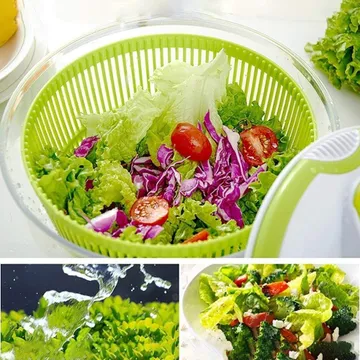 المميزات: غسل وتجفيف الخضروات والفواكه بسرعة وكفاءة آلية تدوير يدوية قوية تقلل وقت التحضير وعاء شفاف متعدد الاستخدام للغسل والتقديم سلة داخلية تعمل كمصفاة مستقلة نظام تصريف ماء مدمج بدون فتح الغطاء مواد آمنة خالية من البيسفينول ايه سهل الاستخدام بيد واحدة لجميع الأعمار سهل التنظيف ومناسب لغسالة الصحون تفاصيل سريعة: نوع المنتج: غسالة ومجفف خضروات وفواكه السعة: 5 لتر الخامة: بلاستيك خالٍ من البيسفينول ايه اللون: أخضر الاستخدام: غسل، تصفية، تجفيف، تقديم نظام التشغيل: يدوي آلية التصريف: مدمجة قابل للغسل في غسالة الصحون: نعم محتويات العبوة: وعاء شفاف سلة تصريف داخلية غطاء بمقبض تدوير كيفية الاستخدام: تحط الخضروات أو الفواكه داخل السلة، تشطفها بالماء، ثم تستخدم مقبض التدوير لتجفيفها بسرعة، وبعدها تفرغ الماء بسهولة عبر نظام التصريف، ويمكن استخدام الوعاء للتقديم مباشرة.