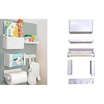 • يخليك ترتب أغراضك بمكان ثابت ويرجع كل شيء مكانه بسرعة. • تقدر تستغل المساحات اللي ما كنت تستخدمها، مثل جانب الثلاجة. • مغناطيس قوي يثبت الأرفف بثبات وما تحتاج تثبيت إضافي. • تصميم متعدد الوظائف 5 استخدامات مختلفة في منظم واحد. • سهل الوصول كل اللي تحتاجه يكون قريب منك بدون عناء. • تصميم أنيق يضيف شكل حلو لمساحة مطبخك. • مقاسات الأرفف تناسب مختلف أدوات المطبخ. • الأرفف سهلة الفك والتنظيف في أي وقت. • مناسب لكل الأغراض البهارات، المناديل، الأدوات الصغيرة. • عملي ومتين ومصنوع بجودة عالية يدوم لفترة طويلة. • تفاصيل سريعة: • الأبعاد: • رف الفويل والمناشف الورقية: 26 × 10 × 9 سم. • علاقات القفازات والمناشف: 25 × 2.2 × 4.7 سم. • رف البهارات: 25 × 4.5 × 2.7 سم. • رف صغير للأغراض: 25 × 7.7 × 4.5 سم. • حامل مناديل الورق: 13 × 10 × 13 سم. • نوع التركيب: مغناطيس. • عدد العلاقات: 3 علاقات •