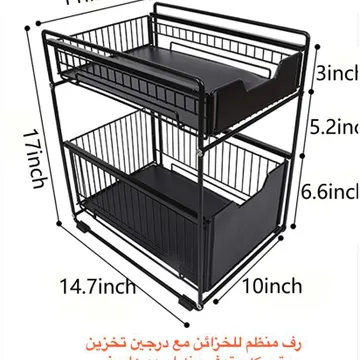 زوايا تسويقية زاوية استغلال المساحات حوّل كل سنتيمتر ضايع تحت المجلي لترتيب عملي زاوية سهولة الوصول توصل لكل أغراضك بدون تعب وكركبة زاوية المتانة والجودة حديد قوي وما يصدي حتى بالرطوبة العالية زاوية الثبات والاستقرار أرجل سيليكون تمنع الانزلاق وتحمي السيراميك زاوية الهدوء والراحة سحّاب الأدراج سلس وما يطلع صوت مزعج زاوية الشكل العصري اللون الأسود يعطي لمسة أنيقة وفخمة لكل مكان ـــــــــــــــــــــــــــــــــــــــــــــــــــــــــــــــــــــــــــــــــــــــــــــــــــــــــــــــــــــــــــــــــــــــــــــــــــــــــــ مميزات: دورين لتنظيم الأشياء الطويلة والقصيرة مع ترتيب مثالي رفوف سحابّة تتحرك بسلاسة بدون أي صوت مزعج فولاذ مطلي حرارياً لمقاومة الصدأ والظروف القاسية الأدراج قابلة للإزالة للاستخدام المنفصل بسهولة يتحمل أوزان ثقيلة بفضل سماكة المعدن وجودته العالية قاعدة السيليكون تمنع الانزلاق وتحمي الأسطح من الخدش الطلاء الخارجي متعدد الطبقات لا يبهت مع الوقت الحواف مدورة وناعمة للاستخدام الآمن والمريح المقاسات مدروسة لتناسب أغلب الدواليب وتحت المجالي مقابض الأدراج مدمجة لتسحب وترجع بسهولة وسرعة ـــــــــــــــــــــــــــــــــــــــــــــــــــــــــــــــــــــــــــــــــــــــــــــــــــــــــــــــــــــــــــــــــــــــــــــــــــــــــــ مواصفات المنتج الماركة جبنريك الضمان: 7 يوم وكيل الضمان: دوزن المادة فولاذ مطلي مع قواعد سيليكون اللون أسود ملكي فخم الأبعاد عرض 28 سم عمق 37 سم ارتفاع 44 سم ارتفاع الدرج العلوي 7 سم ارتفاع الدرج السفلي 17 سم الميزة رفوف سحابّة قابلة للفك ـــــــــــــــــــــــــــــــــــــــــــــــــــــــــــــــــــــــــــــــــــــــــــــــــــــــــــــــــــــــــــــــــــــــــــــــــــــــــــ محتويات العبوة: 1 X هيكل المنظم المعدني المزدوج 2 X درجين سحابّة واحد كبير وواحد صغير 1 X قواعد سيليكون مانعة للانزلاق