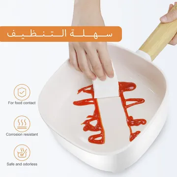 المميزات: تسخن من الجهتين، تقلب الأكل وانت مرتاح. تحفظ الحرارة والرطوبة، والأكل يطلع طري ولذيذ. نفس فكرة طناجر الضغط، تطبخ أسرع وبشكل صحي. ما ترش ولا تنقط، فيها حلقة سيليكون وقفل مغناطيسي قوي. تقلي وتشوي وتحمّر، تسوي كل شي بيدك. توفر وقت وكهرب، ما تحتاج حرارة عالية. ما تلصق، وتريحك وقت التنظيف. مصنوعة من ألمنيوم قوي وتتحمل الاستخدام اليومي. تنظيفها سهل، بس امسحها وخلاص. تنفع للفطور والعشا، بان كيك، بيض، هوت دوغ وسندويتشات. تفاصيل سريعة: العلامة التجارية: DLC الضمان: عامين. وكيل الضمان: DLC اللون: أسود الخامة: ألمنيوم مقبض: ستانلس ستيل الوزن: 1660 جرام مقاسها: تقريبا 32 × 26 × 6.5 سم السطح: غير لاصق طريقة التنظيف: غسيل يدوي فقط استخدامات المنتج: شوي، قلي، تحمير، ساندويتشات وغيره محتويات العبوة: 1 × مقلاة شواء مزدوجة 1 × حلقة إغلاق سيليكون الأضحى