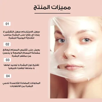 مميزات عرض 4 ماسك Night Wrapping بالكولاجين: غني بالكولاجين لترطيب البشرة وتجديدها. يحتوي على حمض الهيالورونيك لتعزيز نعومة البشرة. يساعد في تقليل التجاعيد والخطوط الدقيقة. يعمل على تنظيف المسام بفعالية. مناسب لجميع أنواع البشرة، بما فيها البشرة الحساسة. يضيف إشراقة طبيعية للبشرة. مصنوع من مكونات عضوية وآمنة للبشرة. قابل للتقشير بسهولة بعد الاستخدام. مصمم للاستخدام المنزلي بطريقة عملية وسهلة. تفاصيل سريعة: السعة: 75 جرام. المكونات: الجلسرين - الكولاجين - السكروز - السيراميد - التوكوفيرول (فيتامين E).