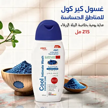 • زوايا تسويقية بيعية • زاوية النظافة اليومية يحافظ على المنطقة الحساسة نظيفة ومرتاحة طول اليوم • زاوية الترطيب يرطب المنطقة ويقلل الجفاف والتهيج • زاوية الحمل مناسب للحوامل لتخفيف التوتر والتقلبات المزاجية • زاوية التفتيح يساعد على تفتيح وتوحيد لون المنطقة • زاوية الانتعاش يعطي شعور بالبرودة والراحة بعد الاستحمام • ـــــــــــــــــــــــــــــــــــــــــــــــــــــــــــــــــــــــــــــــــــــــــــــــــــــــــــــــــــــــــــــــــــــــــــــــــــــــــــ • المميزات • يحمي المنطقة الحساسة ويمنع نمو البكتيريا والفطريات • يحتوي على مستخلص النيلة المغربي لتفتيح وتوحيد لون البشرة • يعزز الترطيب الطبيعي للمنطقة ويقلل الجفاف • يخفف توتر المرأة الحامل ويوازن المزاج • يحتوي على حمض اللاكتيك لضبط الوسط الحمضي الطبيعي • يحتوي على خلاصة العرق سوس لتفتيح البشرة • غني بمستخلص الصبار لتهدئة الالتهابات وترطيب البشرة • آمن للاستخدام اليومي وخالي من المواد الضارة • سهل الاستخدام ويوفر تنظيف سريع ومنعش • يحافظ على نظافة البشرة ويتركها ناعمة • ـــــــــــــــــــــــــــــــــــــــــــــــــــــــــــــــــــــــــــــــــــــــــــــــــــــــــــــــــــــــــــــــــــــــــــــــــــــــــــ • مواصفات المنتج • الحجم 215 مل • المكونات الأساسية مستخلص النيلة المغربي، خلاصة العرق سوس، الصبار، حمض اللاكتيك • نوع البشرة عادي • الفئة العمرية للكبار والبالغات • الفوائد حماية يومية، ترطيب، تفتيح، منع البكتيريا والفطريات • اللون أزرق • ـــــــــــــــــــــــــــــــــــــــــــــــــــــــــــــــــــــــــــــــــــــــــــــــــــــــــــــــــــــــــــــــــــــــــــــــــــــــــــ • محتويات المنتج • 1 × عبوة غسول يومي 215 مل • ـــــــــــــــــــــــــــــــــــــــــــــــــــــــــــــــــــــــــــــــــــــــــــــــــــــــــــــــــــــــــــــــــــــــــــــــــــــــــــ • طريقة الاستخدام • رجّي العبوة قبل الاستخدام • اضغطي المضخة لتحصلي على كمية مناسبة • وزّعي الرغوة بلطف على المنطقة الحساسة من الخارج • اشطفي المنطقة بالماء الفاتر وجففي بمنشفة نظيفة