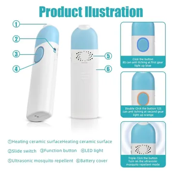 المميزات: يخفف الحكة والاحمرار الناتج عن لدغات الحشرات. يعطي راحة فورية بعد اللدغة. آمن للأطفال والحامل والبشرة الحساسة. بدون مواد كيميائية أو كريمات. صغير وخفيف وسهل الحمل بالطلعات أو السفر. يشتغل بالبطارية، ما يحتاج كهرباء. تصميم عصري وسهل الاستخدام. موفر للطاقة وصديق للبيئة.
