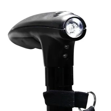 عكاز مميز ومثالي لكبار السن من الرجال والنساء او لمن يتعرض لاصابة مؤقتة تعيق الحركة او الوقوف. انه عكاز آمن تماما بفضل القاعدة الرباعية بالاضافة للمصباح القوي للاستخدام الليلي او في الظلام.