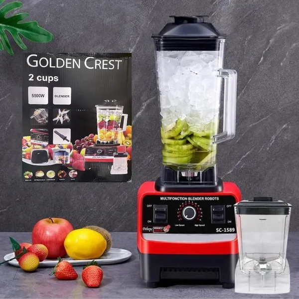 المميزات قوي جدًا بقدرة 5500 واط يسحق الثلج بسهولة يحتوي على 6 شفرات ستانلس ستيل حادة وسريعة يخلط العصائر والسموثي والخضار والمكسرات بسرعة يشغل وظيفة الطحن والخلط والطعام بنفس الجهاز مزود بطاحنة إضافية للقهوة والتوابل والحبوب مزود بسرعات متعددة للتحكم بقوام الخليط قدر الخلط كبير 2.5 لتر مناسب للعائلة والكافيهات غطاء محكم يمنع تناثر المكونات أثناء التشغيل قاعدة مانعة للانزلاق لضمان ثبات الجهاز مصنوع من خامات قوية تتحمل الاستخدام اليومي ـــــــــــــــــــــــــــــــــــــــــــــــــــــــــــــــــــــــــــــــــــــــــــــــــــــــــــــــــــــــــــــــــــــــــــــــــــــــــــ المواصفات السعة 2.5 لتر القدرة الكهربائية 5500 واط عدد السرعات متعددة وسرعة نبض الخامات ستانلس ستيل وبلاستيك عالي الجودة نوع الجهاز خلاط تجاري متعدد الوظائف وظائف إضافية طحن القهوة والتوابل والمكسرات نوع التشغيل سلك كهرباء مقاوم للانزلاق وقابل للفك والتنظيف بسهولة الألوان أحمر وأسود الوزن تقريبا 5 كجم ـــــــــــــــــــــــــــــــــــــــــــــــــــــــــــــــــــــــــــــــــــــــــــــــــــــــــــــــــــــــــــــــــــــــــــــــــــــــــــ محتويات المنتج 1 × خلاط تجاري 5500 واط 1 × طاحنة إضافية للقهوة والتوابل 1 × غطاء محكم 1 × دليل استخدام ـــــــــــــــــــــــــــــــــــــــــــــــــــــــــــــــــــــــــــــــــــــــــــــــــــــــــــــــــــــــــــــــــــــــــــــــــــــــــــ طريقة الاستخدام شبك الجهاز بالكهرباء ضع المكونات داخل الوعاء اختر السرعة أو النبض حسب الحاجة شغّل الجهاز حتى تحصل على القوام المطلوب بعد الاستخدام افصل الجهاز ونظف جميع القطع