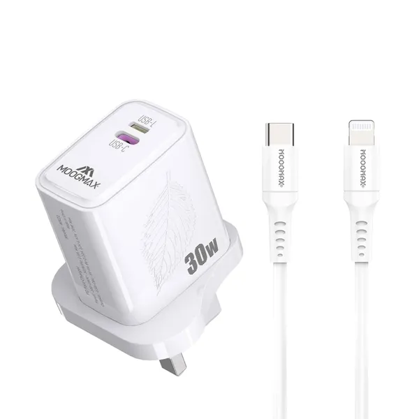 • المميزات: • شاحن بقوة 30 واط يضمن لك شحن سريع وفعّال. • منفذين، واحد تايب سي والثاني لايتنينج، تشحن جهازين بنفس الوقت. • متوافق مع أجهزة أبل مثل الآيفون والآيباد والآيبود. • معتمد من أبل، يعني أمان وضمان جودة عالية. • يدعم تقنية PD للشحن السريع ويوفر طاقة مستقرة. • تصميم مدمج وخفيف، مناسب للسفر والاستخدام اليومي. • لون أبيض أنيق يتناسب مع أجهزة أبل. • يقلل من الحاجة لحمل عدة شواحن وكابلات. • كابل مرفق بجودة عالية لتحمل الاستخدام الطويل. • يوفر حماية من زيادة التيار وارتفاع الحرارة. • تفاصيل سريعة: • العلامة التجارية: موج ماكس • الضمان: عامين. • وكيل الضمان: موج ماكس • القوة: 30 واط • المنافذ: تايب سي + لايتنينج • يدعم: الشحن السريع PD • اللون: أبيض • متوافق مع: أجهزة iPhone, iPad, iPod • محتويات العبوة: • 1 X شاحن بقوة 30 واط • 1 x كابل شحن تايب سي إلى لايتنينج • 1 x دليل الاستخدام