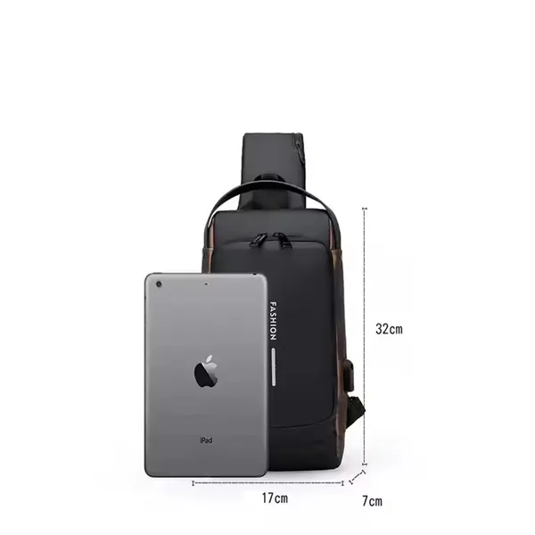 المميزات: تصميمها أنيق ومودرن، يضبط مع كل لبسك. حجمها مناسب: لا صغيرة ولا كبيرة، تكفي أغراضك اليومية. مقاومة للماء، تحفظ أغراضك لو جاك مطر ولا رطوبة. فيها سحاب مخفي ونظام ضد السرقة. تجي مع منفذ USB تشحن جوالك وأنت تمشي. خامتها نايلون قوي، تتحمل الاستخدام اليومي والشاق. تنفع للدوام، الطلعات، السفر، أو حتى النادي. شكلها موحد، تنفع للبنات والعيال بنفس الوقت. خفيفة على الكتف وما تتعبك حتى لو لبستها وقت طويل. فيها سلسلة ديكور تضيف لمسة ستايل على لبسك. ـــــــــــــــــــــــــــــــــــــــــــــــــــــــــــــــــــــــــــــــــــــــــــــــــــــــــــــــــــــــــــــــــــــــــــــــــــــــــــ تفاصيل سريعة: الماركة: yunfan الضمان: جينريك الماركة: 7 يوم وكيل الضمان:دوزن النوع: شنطة كتف (Crossbody Bag) الجنس: للجنسين (Unisex) اللون: أسود الأبعاد: 17 × 32 × 7 سم الوزن: 400 جرام الخامة: نايلون مقاوم للماء + PU النمط: عصري - بستايل ناعم الاستخدام: يومي، دوام، سفر، رياضة المميزات الإضافية: مقاومة للماء، منفذ USB، نظام حماية ضد السرقة.