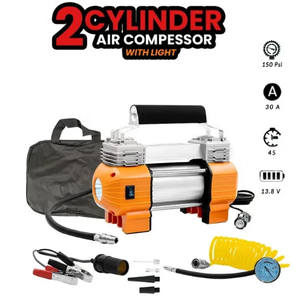 المميزات: محرك قوي مصمم يتحمل الشغل الثقيل بكل سهولة. يشتغل مباشرة على بطارية السيارة، ومثالي للإطارات الثقيلة. ضغطه العالي يعبّي الإطارات بسرعة وكفاءة. فيه نظام حماية يوقف التضخم الزايد تلقائيًا. يناسب كل أنواع السيارات، الدراجات النارية، وحتى المركبات الكبيرة. مزود بوصلات إضافية تشتغل مع الكور وحلقات السباحة وغيرها. تصميم عملي مع خرطوم طويل يوصل للإطارات بسهولة. مصنوع من هيكل معدني متين يتحمل أصعب الظروف. سهل تحمله وتنقله لأي مكان بفضل الحقيبة المرفقة. أداة تعتمد عليها في رحلات البر والمواقف الطارئة. الكومبروسر يخرج الهواء مباشرة بدون تخزين ـــــــــــــــــــــــــــــــــــــــــــــــــــــــــــــــــــــــــــــــــــــــــــــــــــــــــــــــــــــــــــــــــــــــــــــــــــــــــــ تفاصيل سريعة: الماركة: Generic الضمان: 7 يوم وكيل الضمان: دوزن الوزن: 5.5 كجم القدرة: 120 واط الأبعاد: 36x29x18 سم الجهد الكهربائي: 12 فولت. الضغط الأقصى: 150 PSI مصدر الطاقة: بطارية السيارة عدد البستم : 1 بستم لون المنتج: عشوائي معدل تدفق الهواء: 5.65 قدم مكعب/دقيقة الطراز: 2cyclinder. ـــــــــــــــــــــــــــــــــــــــــــــــــــــــــــــــــــــــــــــــــــــــــــــــــــــــــــــــــــــــــــــــــــــــــــــــــــــــــــ محتويات العبوة: 1 x كمبروسر هواء للسيارة. 1 x كابل توصيل للبطارية مع كلّابات. 1 x خرطوم هواء طويل. 3 x وصلات هواء إضافية مختلفة الاستخدام. 1 x حقيبة تخزين محمولة. 1 x دليل المستخدم.