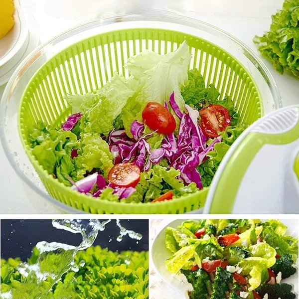 المميزات: غسل وتجفيف الخضروات والفواكه بسرعة وكفاءة آلية تدوير يدوية قوية تقلل وقت التحضير وعاء شفاف متعدد الاستخدام للغسل والتقديم سلة داخلية تعمل كمصفاة مستقلة نظام تصريف ماء مدمج بدون فتح الغطاء مواد آمنة خالية من البيسفينول ايه سهل الاستخدام بيد واحدة لجميع الأعمار سهل التنظيف ومناسب لغسالة الصحون تفاصيل سريعة: نوع المنتج: غسالة ومجفف خضروات وفواكه السعة: 5 لتر الخامة: بلاستيك خالٍ من البيسفينول ايه اللون: أخضر الاستخدام: غسل، تصفية، تجفيف، تقديم نظام التشغيل: يدوي آلية التصريف: مدمجة قابل للغسل في غسالة الصحون: نعم محتويات العبوة: وعاء شفاف سلة تصريف داخلية غطاء بمقبض تدوير كيفية الاستخدام: تحط الخضروات أو الفواكه داخل السلة، تشطفها بالماء، ثم تستخدم مقبض التدوير لتجفيفها بسرعة، وبعدها تفرغ الماء بسهولة عبر نظام التصريف، ويمكن استخدام الوعاء للتقديم مباشرة.