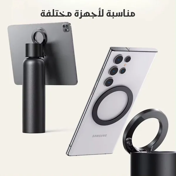 المميزات: حامل جوال بدوران كامل 360° وتدوير حتى 90° تحفظ الحرارة 12 ساعة والبرودة 24 مصنوعة من ستانلس ستيل ضد الخدوش تعمل كحامل جوال ثلاثي القاعدة آمنة لغسالة الصحون وخالية من BPA تناسب جميع الأجهزة مع حلقة مغناطيسية تفاصيل سريعة: السعة: 946 مل الوزن: 0.65 كجم اللون: عشوائي الخامة: ستانلس ستيل مزدوج الجدار الفئة العمرية: جميع الأعمار الاستخدام: ماء ومشروبات ساخنة أو باردة محتويات العبوة: زجاجة Ringo حلقة مغناطيسية معززة كتيب تعليمات كيفية الاستخدام: اشحن هاتفك إذا لزم ثبت الجوال على الزجاجة بالمغناطيس استخدم الزجاجة كحامل ثلاثي للتصوير أو التصفح ضعها على سطح ثابت لتثبيت الجوال اغسلها يدويًا أو بغسالة الصحون بعد الاستخدام