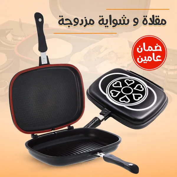 المميزات: تسخن من الجهتين، تقلب الأكل وانت مرتاح. تحفظ الحرارة والرطوبة، والأكل يطلع طري ولذيذ. نفس فكرة طناجر الضغط، تطبخ أسرع وبشكل صحي. ما ترش ولا تنقط، فيها حلقة سيليكون وقفل مغناطيسي قوي. تقلي وتشوي وتحمّر، تسوي كل شي بيدك. توفر وقت وكهرب، ما تحتاج حرارة عالية. ما تلصق، وتريحك وقت التنظيف. مصنوعة من ألمنيوم قوي وتتحمل الاستخدام اليومي. تنظيفها سهل، بس امسحها وخلاص. تنفع للفطور والعشا، بان كيك، بيض، هوت دوغ وسندويتشات. تفاصيل سريعة: العلامة التجارية: DLC الضمان: عامين. وكيل الضمان: DLC اللون: أسود الخامة: ألمنيوم مقبض: ستانلس ستيل الوزن: 1660 جرام مقاسها: تقريبا 32 × 26 × 6.5 سم السطح: غير لاصق طريقة التنظيف: غسيل يدوي فقط استخدامات المنتج: شوي، قلي، تحمير، ساندويتشات وغيره محتويات العبوة: 1 × مقلاة شواء مزدوجة 1 × حلقة إغلاق سيليكون الأضحى