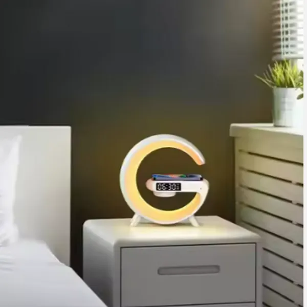 "تجربة شحن لاسلكي مميزة مع شاحن لاسلكي بمكبر صوت ومصباح ليد بتصميم أنيق" هذا الشاحن المبتكر يتيح لك شحن هاتفك الذكي بسرعة وسهولة دون الحاجة إلى أسلاك متشابكة. بالإضافة يمكنك الاستماع إلى الموسيقى المفضلة لديك عبر المكبر الصوت المدمج واستخدام المصباح الليد لإضاءة مكتبك أو منطقة الشحن.