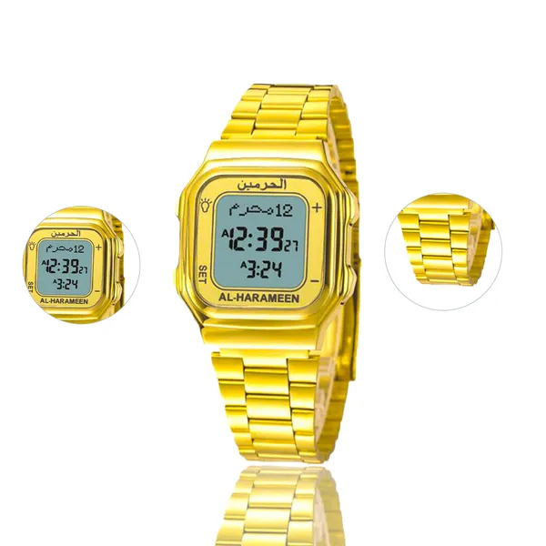 المميزات: تعرض الوقت بدقة على شاشة واضحة. فيها منبّه سهل تضبطه بأي وقت. تعرض التقويم الهجري والميلادي بدون تعب. تنبّه لكل صلاة وتتغير مع مواعيد الأذان. أساور ستانلس ستيل ما تصدي أبداً. مقاومة للماء والخدوش بشكل ممتاز. تدعم اللغة العربية والإنجليزية بسهولة. تصميم أنيق يناسب كل المناسبات اليومية. فيها متابعة للآيات بشكل مريح وواضح. تعرض عمر القمر بطريقة بسيطة وسريعة. ـــــــــــــــــــــــــــــــــــــــــــــــــــــــــــــــــــــــــــــــــــــــــــــــــــــــــــــــــــــــــــــــــــــــــــــــــــــــــــ المواصفات: الماركة: جينريك الضمان: 7 يوم وكيل الضمان: دوزن المقاس: 5 × 5 × 5 سم. الوزن: تقريباً 80 جرام. نوع السوار: ستانلس ستيل ضد الصدأ. اللون المتوفر: ذهبي. مدة الضمان: سنة ضد عيوب التصنيع. ـــــــــــــــــــــــــــــــــــــــــــــــــــــــــــــــــــــــــــــــــــــــــــــــــــــــــــــــــــــــــــــــــــــــــــــــــــــــــــ محتويات العبوة: ساعة منبّه ذكية. سوار ستانلس ستيل جاهز للّبس. دليل استخدام مختصر وواضح. بطاقة ضمان لمدة سنة. ـــــــــــــــــــــــــــــــــــــــــــــــــــــــــــــــــــــــــــــــــــــــــــــــــــــــــــــــــــــــــــــــــــــــــــــــــــــــــــ طريقة الاستخدام: اختر مدينتك وتضبط مواقيت الصلاة تلقائي. فعّل المنبّه للتذكير بأوقاتك المهمة. بدّل بين 12 أو 24 ساعة بسهولة. اضغط زر الإضاءة لقراءة الوقت بالليل.