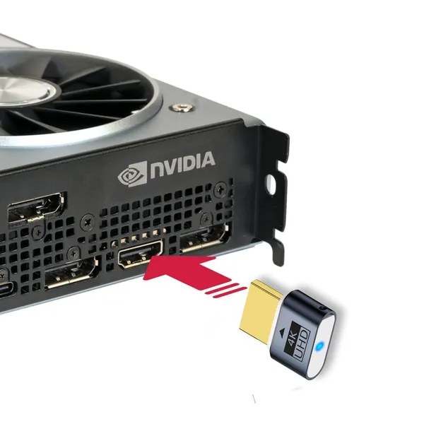 • المميزات: • يفعل كرت الشاشة على الكمبيوترات بدون ما تحتاج توصل شاشة فعلية. • يدعم دقة عرض توصل لـ 4K بسرعة 60Hz عشان تاخذ وضوح عالي. • تصميمه صغير وخفيف، تقدر تستخدمه وين ما تبغى بكل سهولة. • ما يحتاج تعريف ولا مصدر طاقة خارجي، بس اشبكه وخله يشتغل. • مثالي للبث المباشر للألعاب، برامج المونتاج زي OBS، وحتى للتعدين. • يحسّن أداء الأجهزة اللي تشتغل بدون شاشة. • يشتغل مع كل الأنظمة: ويندوز، ماك، ولينكس. • واجهته HDMI مطلية بالذهب، يعني إشارة مستقرة وأداء ممتاز. • يناسب السيرفرات المنزلية، وحتى الأجهزة البعيدة. • يعطيك خيارات دقة مختلفة عشان تشتغل براحتك مع الشاشة الافتراضية. • تفاصيل سريعة: • أبعاد الشحنة: 14.2 × 8.79 × 1.09 سم. • الوزن: 9 غرام. • الموديل: T0667-1. • يدعم دقة تصل إلى: 4096×2160 (4K) @ 60Hz. • متوافق مع كروت الشاشة المستقلة مثل GTX 1050 وما فوق. • متوافق مع أنظمة التشغيل: ويندوز 7-11، ماك OSX، لينكس. • محتويات العبوة: • 4 x سدادة وهمية HDMI